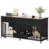 Indoor Dog Crate Furniture Large Breed with Storage&Dog Feeder, Double Dog Kennel Furniture TV Stand, 74.8" Inch Wooden Decorative Dog Kennel Furniture for 2 Dogs, Black