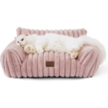 Bedsure Cute Couch for Pets – Fluffy Cat Sofa with Premium Soft Corduroy Fleece, Fuzzy Couch Bed with Removable Washable Cover, Supportive Cat Chair for Indoor Cats, 24Inch, Blush Pink Bedsure Comfy Pet