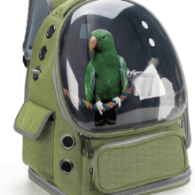 Bird Backpack Carrier Travel Cage with Perch, Tray and Breathable Clear Window, Bird Travel Cage for Cockatiel Caique Conure Quaker, for Vetting Camping Hiking (Green)