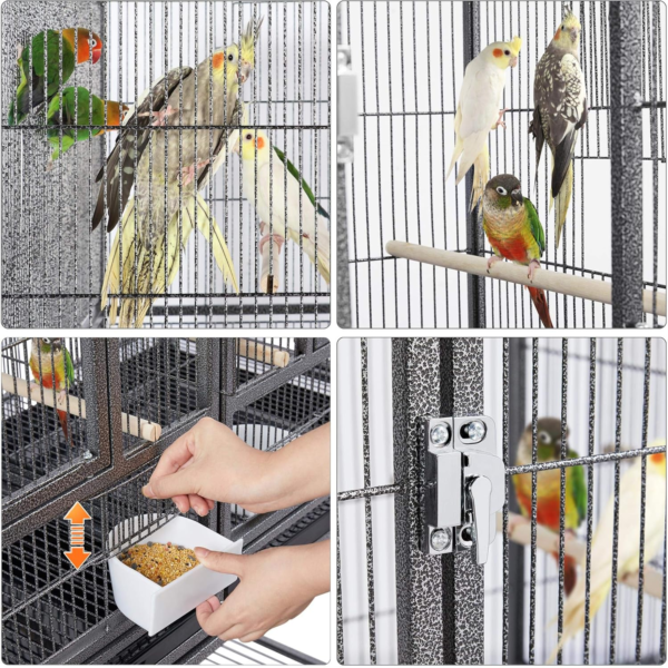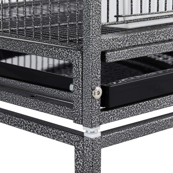 41.5” H divided breeder cage in water-resistant hammered paint provides you with heavy-duty wrought metal construction. With the included dividing grate, you can create two individual smaller bird cages or remove the dividing grate to use as one large birdcage.
