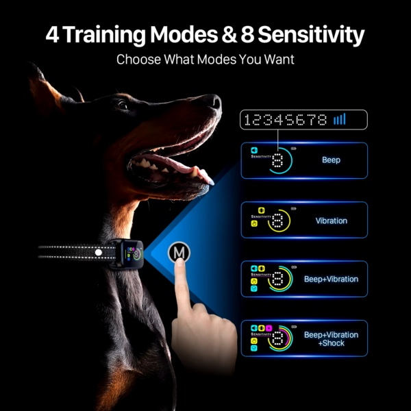 Long-lasting Battery Life: The collar comes with a 20-hour battery life, allowing you to enjoy uninterrupted use without needing to frequently recharge. This long-lasting power ensures that the collar remains effective during training sessions.
