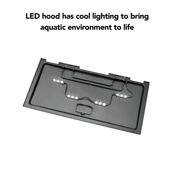 - Low profile full hood contains vibrant cool white LED lighting to bring your aquatic environment to life
