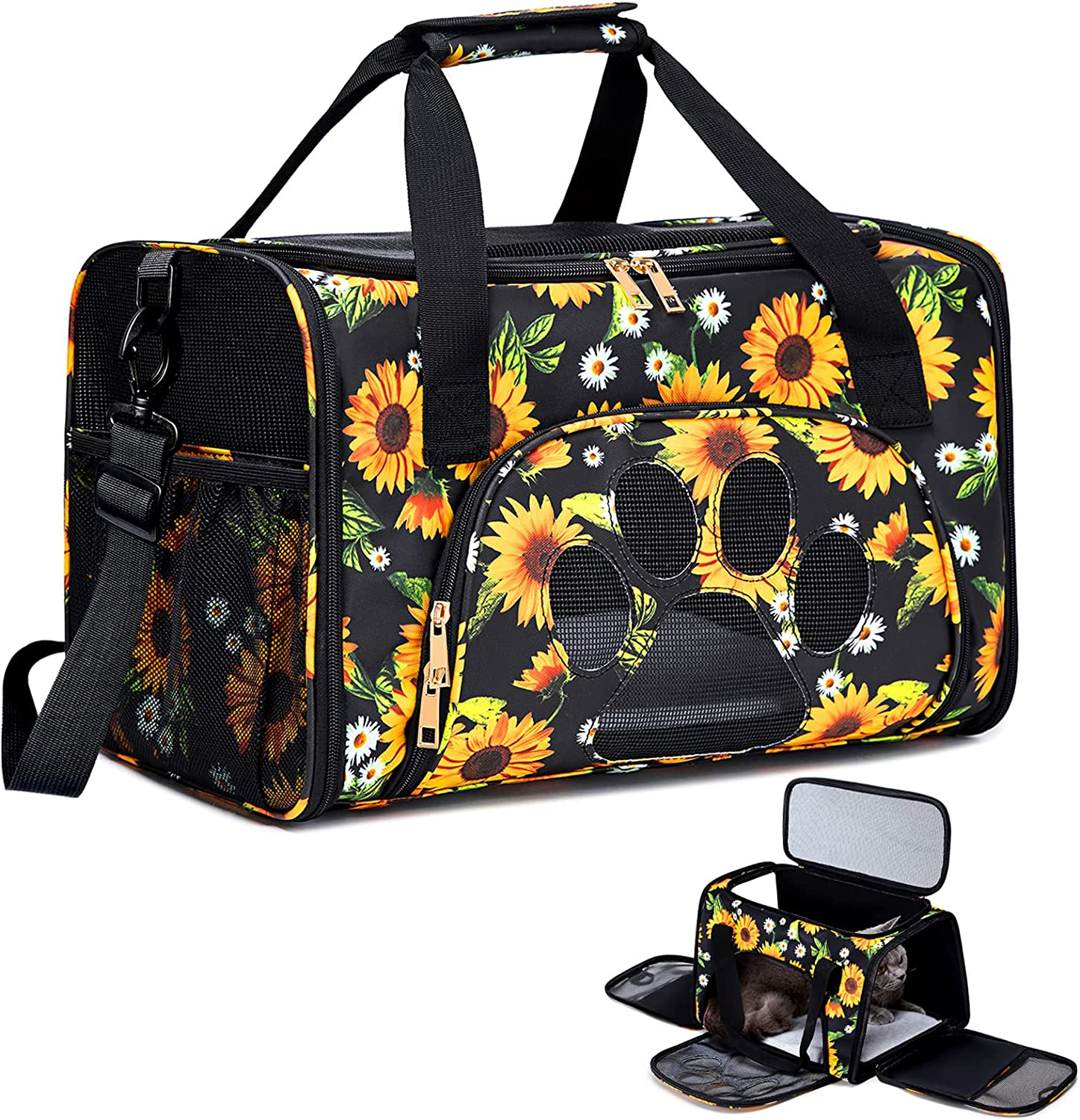 Idle Hippo is committed to making every pet a comfortable experience. This soft-sided pet carrier with a padded inside provide your cats, dogs a comfortable environment. Sunflower patterns bring you joy when carrying your bag!