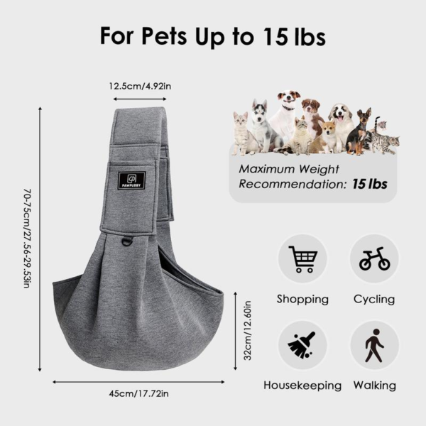 The Pet Sling carrier for small and medium pets weighing up to 15 lbs is the perfect accessory for your furry friend’s travel needs. Whether it’s a daily walk or outdoor activities, this versatile carrier can be worn as a crossbody or over the shoulder for your convenience.
