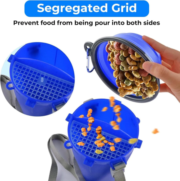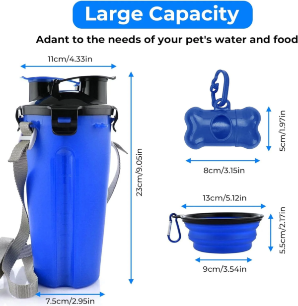 - Large Capacity: 12oz for water and 8oz for food in one bottle, the collapsible dog bowl is 12 oz, enough for outdoor walking, hiking, and traveling.