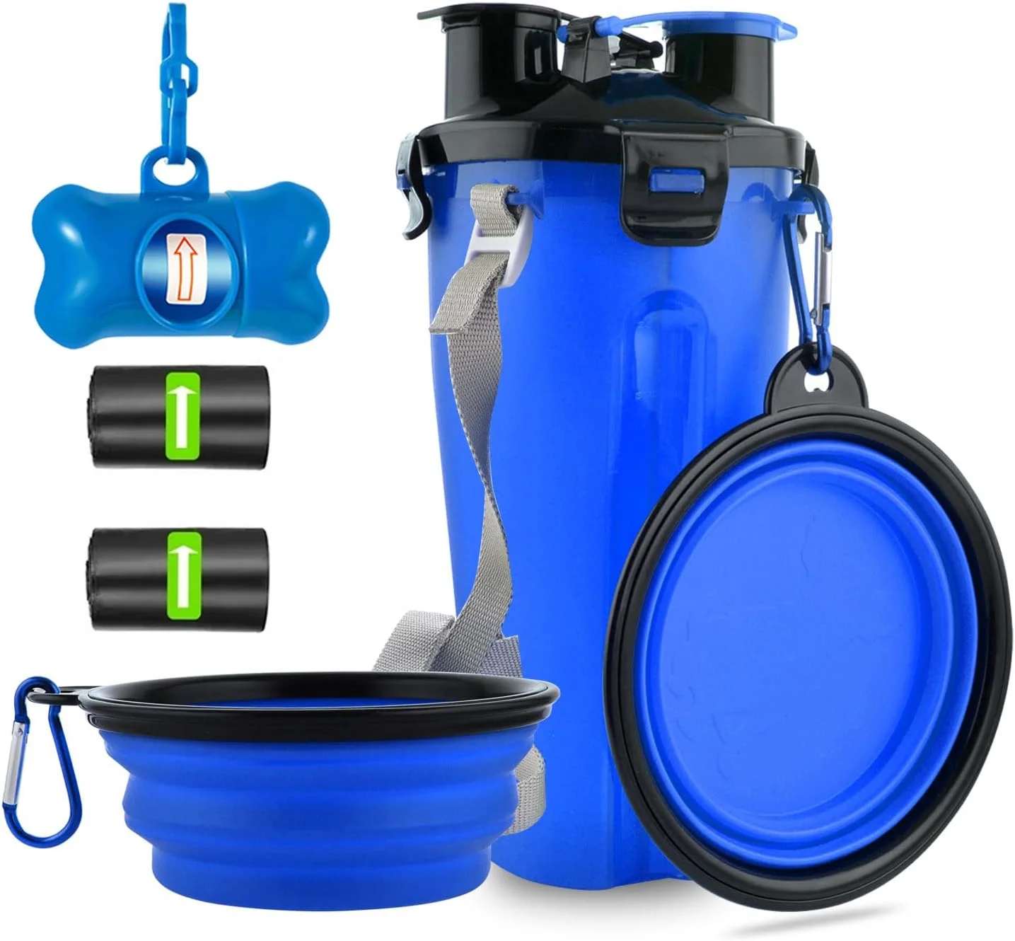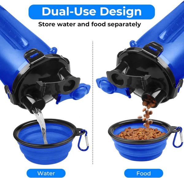 Dog Travel Water Bottle Collapsible Dog Bowls, 2 in 1 Pet Food Container, Portable Dog Bowls Water Bottle with Dog Poop Bag Dispenser for Walking, Camping, and Hiking (Blue)