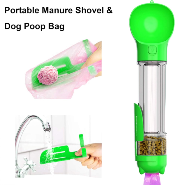 Dog Water Bottle for Walking, Portable Dog Water Travel Dispenser with Food Container, Poop Shove and Waste Bag for Pets Outdoor Walking, Hiking, Travel (500Ml, Green)