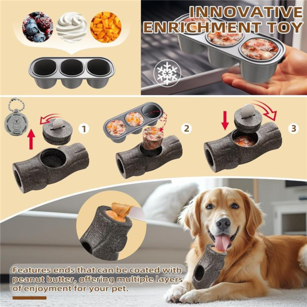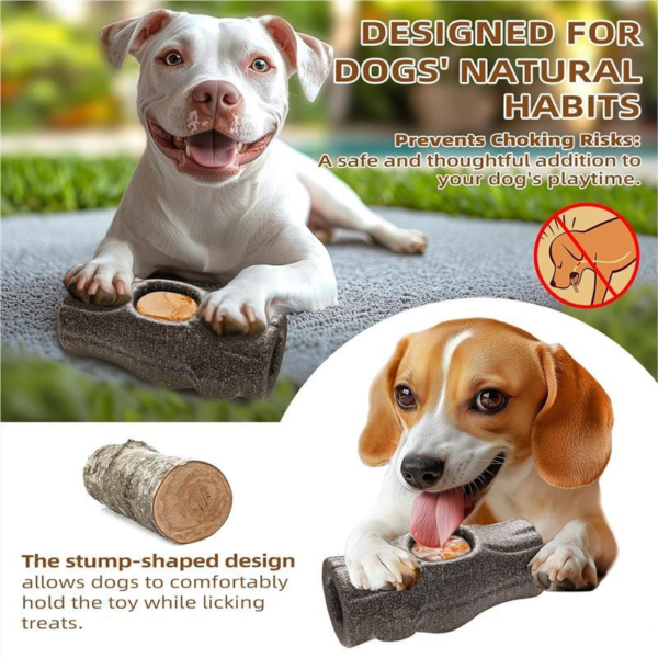 - Designed for Natural Habits: The toy features a tree-stump-inspired design with a cylindrical structure, allowing dogs to comfortably use it. The center can be filled with frozen food blocks, while the sides can be filled with peanut butter, making it perfect for use as a pup cup.