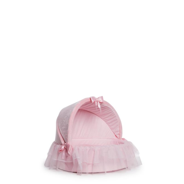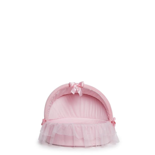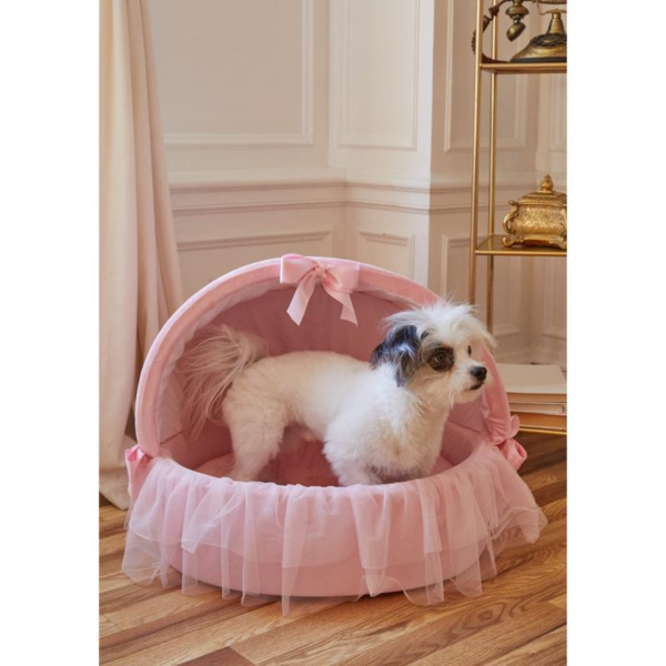 Treat your pet like a princess with this plush faux fur pet bed that has ruffled mesh detailing and satin bow appliques.