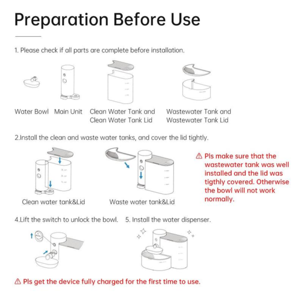 【Tipping Sewage Separation】: Innovative tipping sewage separation technology keeps clean and dirty water apart, providing a healthier drinking environment for your cats and dogs.