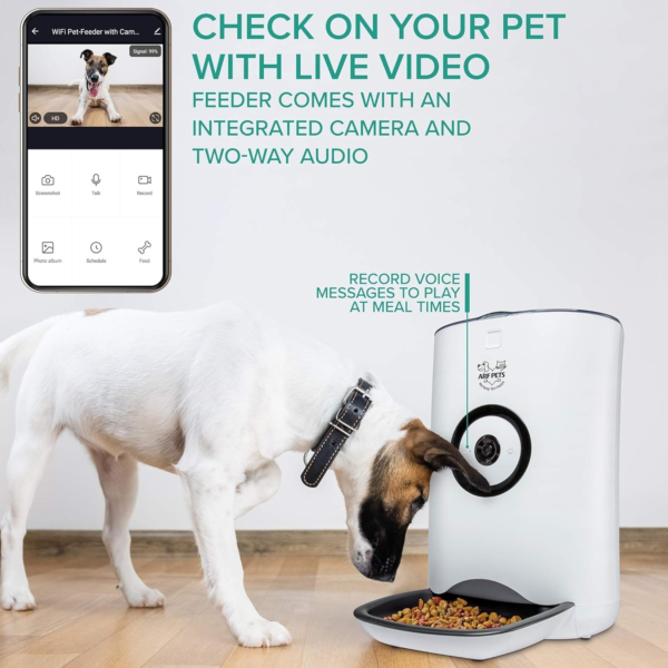 Never wake up early or rush home to feed your pet again. The Arf Pets Smart Automated Dog and Cat Feeder With Camera (White) lets you build a customized eating schedule to keep your pet happy even when you’re away. Our easy-to-use smartphone app lets you control every aspect of your pet automatic feeder. Build your pet’s feeding schedule and view past feedings to ensure your wifi pet feeder is working simply and easily.