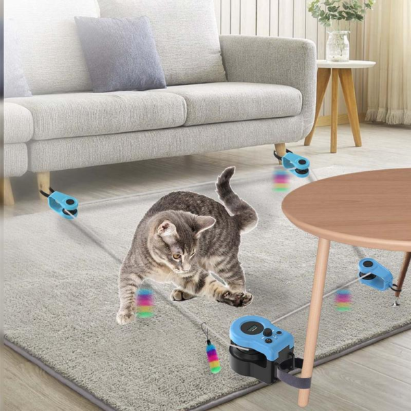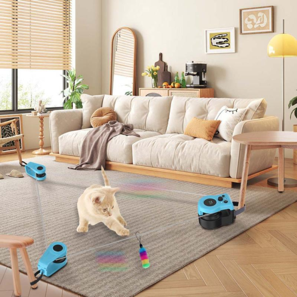 - Adjustable Speed & Replaceable Accessories:Choose the perfect speed for your cat and customize the fun with interchangeable attachments like feathers, colorful cloth, or paper strips.